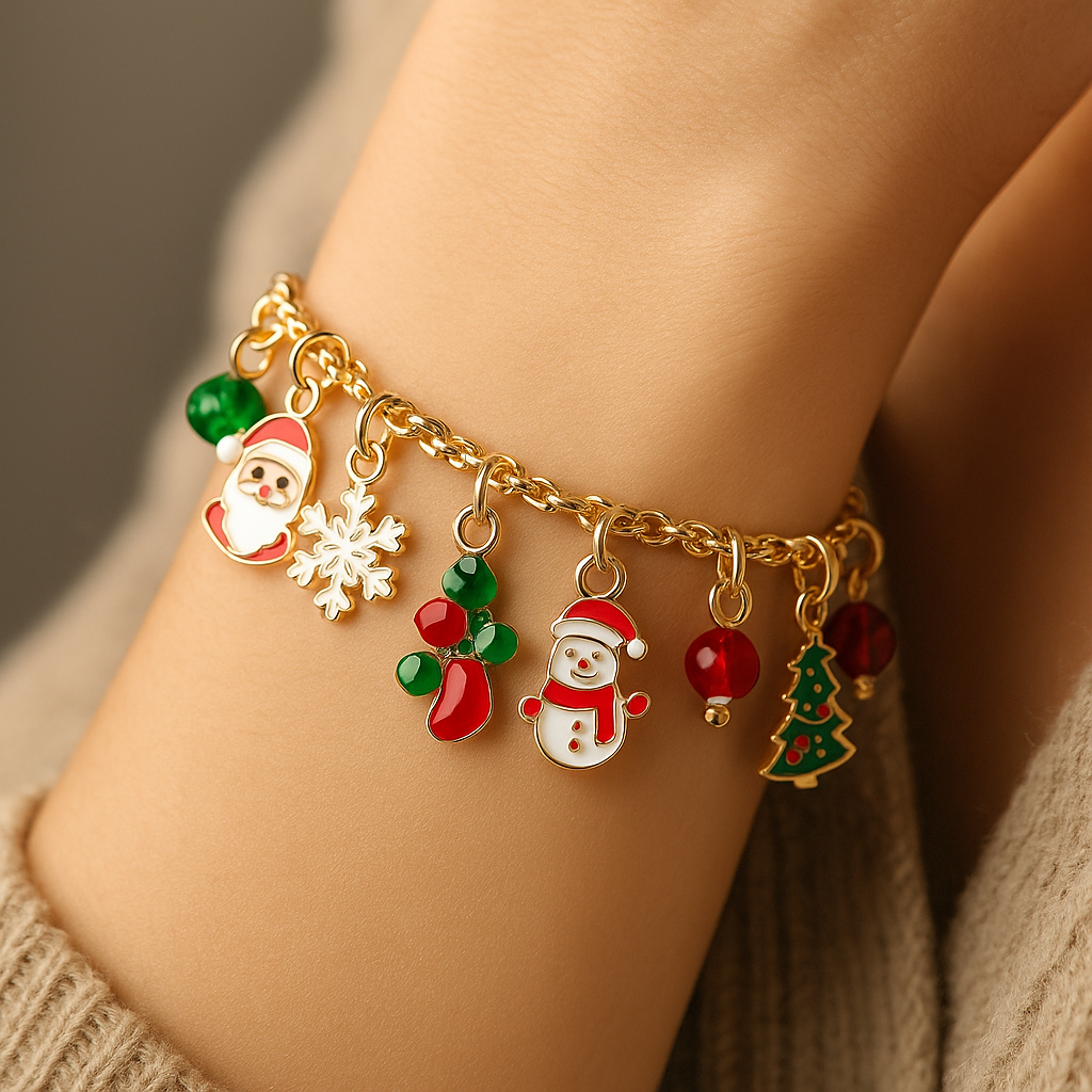 Na kraju, dobija se prelepa, personalizovana novo godisnja narukvica sa omiljenim zimskim motivima — Deda Mrazom, irvasom, pahuljama, rukavicama, čizmicama i mnogim drugim prazničnim detaljima.